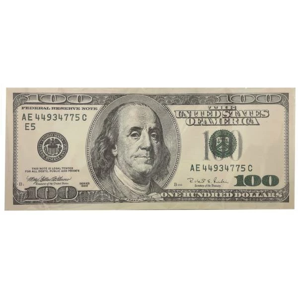 Jumbo $100 bills will make you feel rich! One pad of 64 bills per pack.
