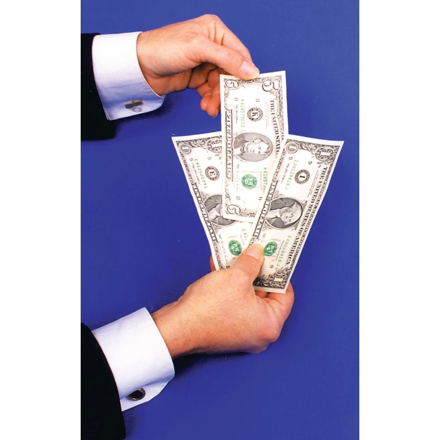 7 DOLLAR TRICK. Magician shows two $1.00 bills and one $5.00 bill. Right before your eyes, the five disappears, and you now have three $1.00 bills. Stage bills included, but can be done with money.