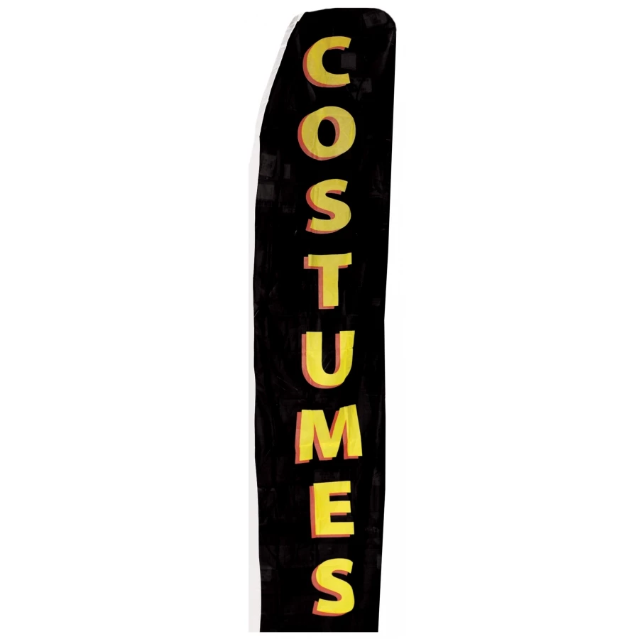 BANNER FLAG COSTUMES. All nylon sign with the word “COSTUME” showing the length the banner. For easy display, use our SA10133 stick in the ground display pole. Banner measures 10 feet X 29 inches.