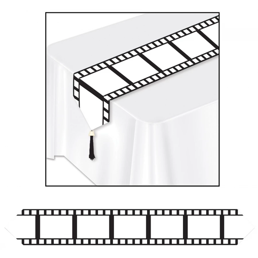 FILMSTRIP TABLERUNNR 11INx 6FT. A very cool tablerunner that would really be great for any awards events, movie premieres or many other occasions. Looks just like a filmstrip! Item measures 11″ X 6″.