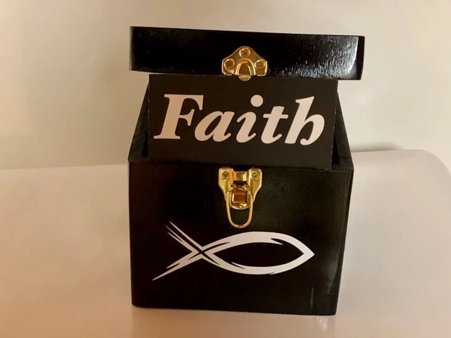 Performer shows a beautiful wooden Gospel Box. A faith card is shown and handed to the spectator. The spectator is able to lift the box. The faith card is taken away from the spectator and the spectator is unable to lift the box. The effect may be repeated with different spectators as often as you wish. The routine and effect fits perfectly for any Gospel presentation.