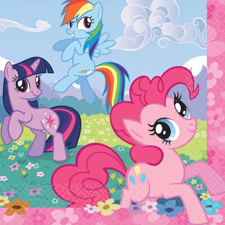 MY LITTLE PONY LUNCH NAPKI. This package of totally awesome My Little Pony Luncheon napkins will let you own your child’s party. These exciting My Little Pony Luncheon Napkins measure 6 1/2″ square and feature the popular children’s characters from My Little Pony. 16 napkins per package.