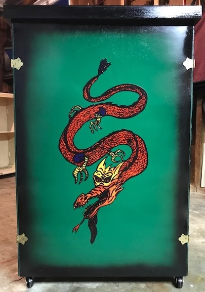 Made in the USA. Hand painted by a professional artist. Built to last, with exceptional beauty. Folds flat for easy carrying. Instant set up. Ships crated. Height 38″ , Length 24.5″, Width/Depth 12″