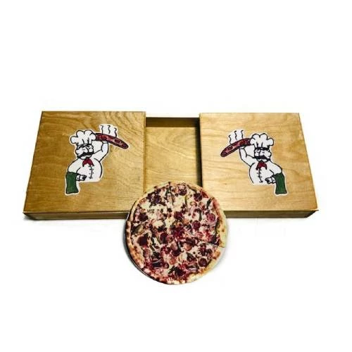 Pizza Oven is quality made of wood in the USA. Comes with apron,ย chef hat, Pizza Oven and complete routine!