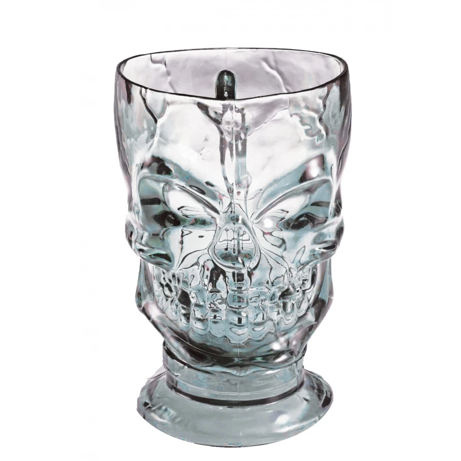 SKULL PITCHER. Startling plastic skull pitcher perfect for a spooktacular night of partying! Holds aprrox 32oz. Color may vary from smoky to clear. 8 inches tall, 4 inches wide.
