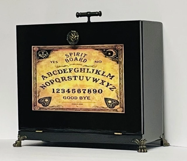 Has all the bells and whistles. Front of the cabinet has Ouija Board design. High quality goblet, and ball. Brass trimmings. Easy to do, comes complete.