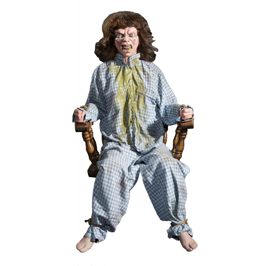 TWISTED ANIMATED. Possessed girl screams as she cranks her head all the way around. OUCH! That’s gotta hurt! Foam filled latex with steel armature. 110v required. 25LBS 36X19X19