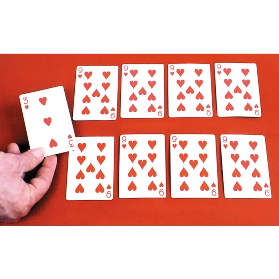 WILD CARD. Nine cards shown, 8 are alike, one is”Wild.” By merely touching the wild card, all the cards become the same as the wild card.
